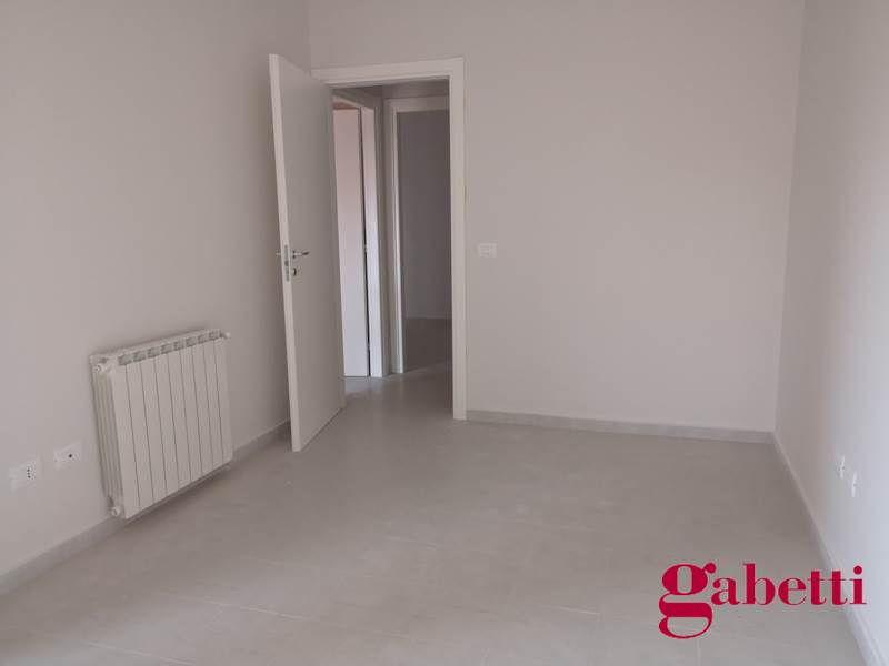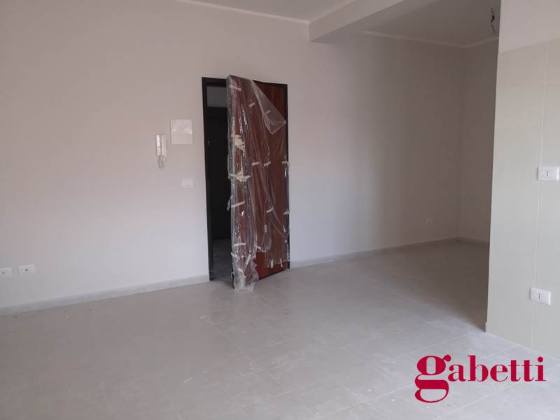 La casa, non arredata, misura circa 65 mqc con cucina soggiorno, corridoio, camera da letto servita da un balcone, bagno con doccia e finestra, ripostiglio, posto auto recintato.