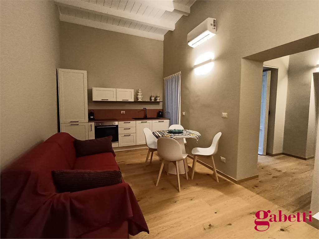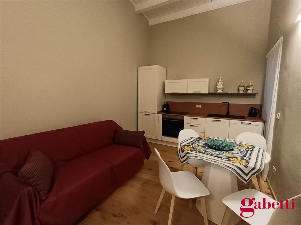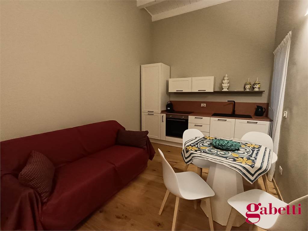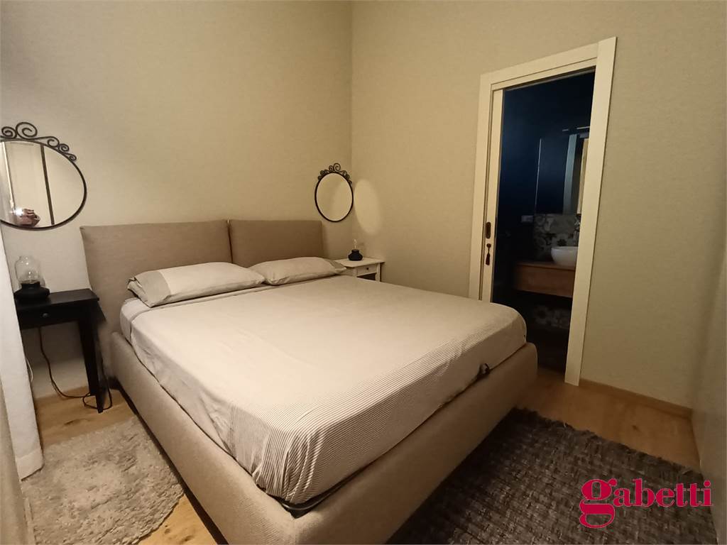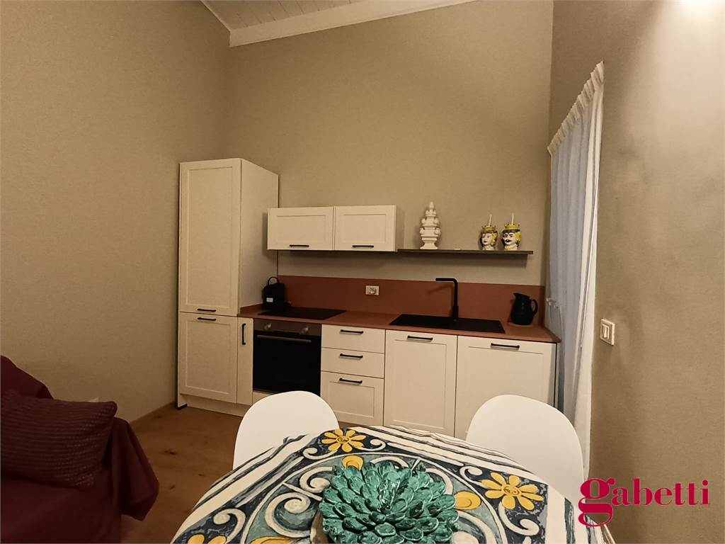 La casa ha ingresso sulla cucina abitabile con piano induzione, frigorifero, forno e lavatrice incassata. Il piccolo corridoio conduce alla camera matrimoniale (con ampio armadio e letto contenitore) e al bagno in camera (dotato di doccia ampia e finestra).