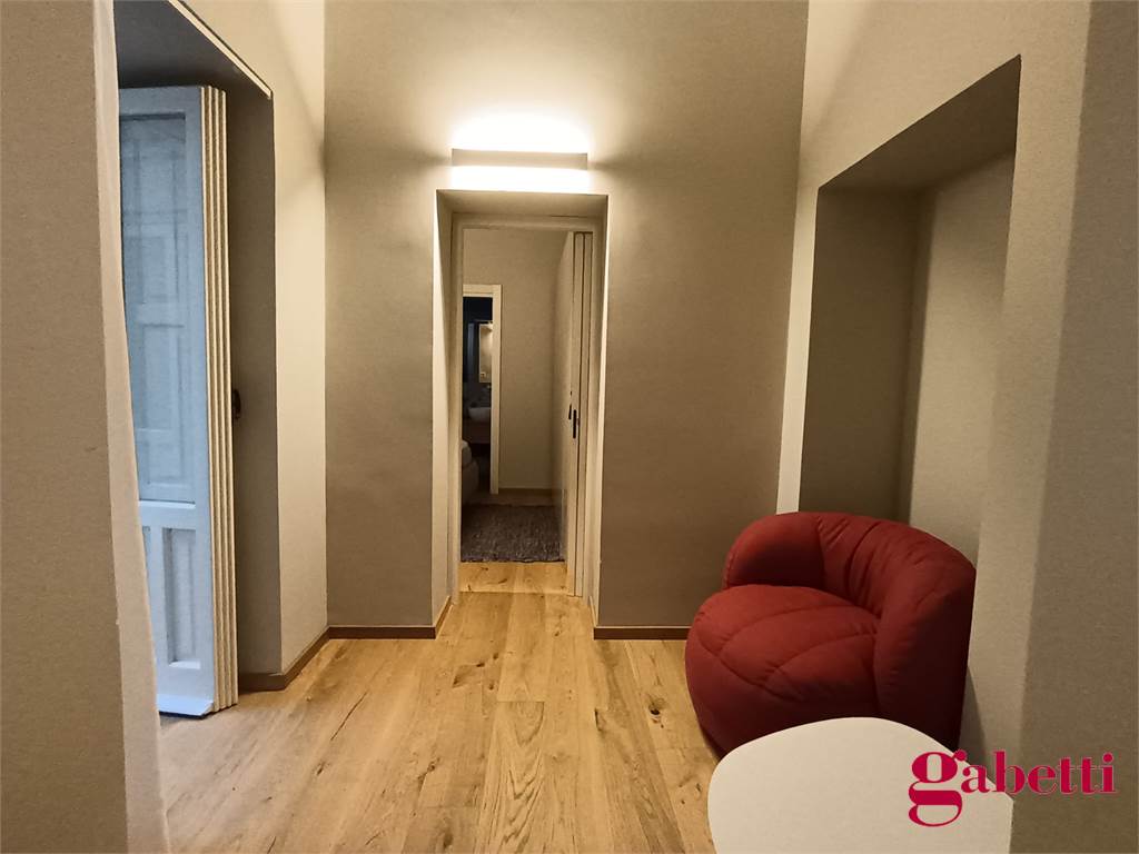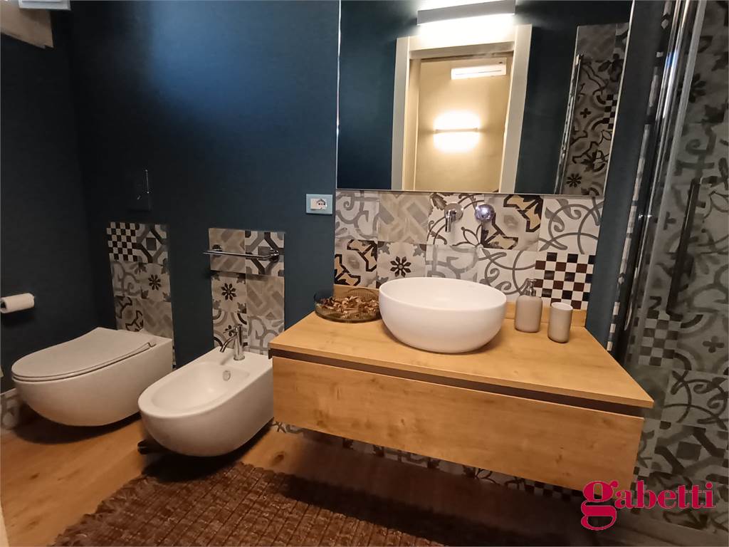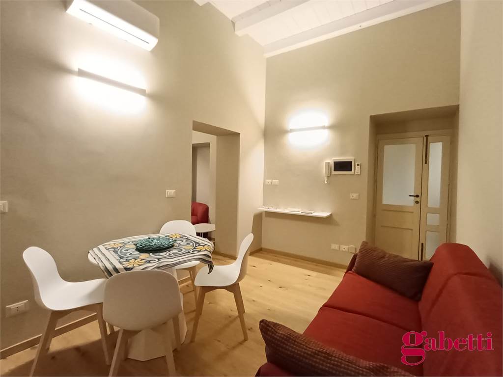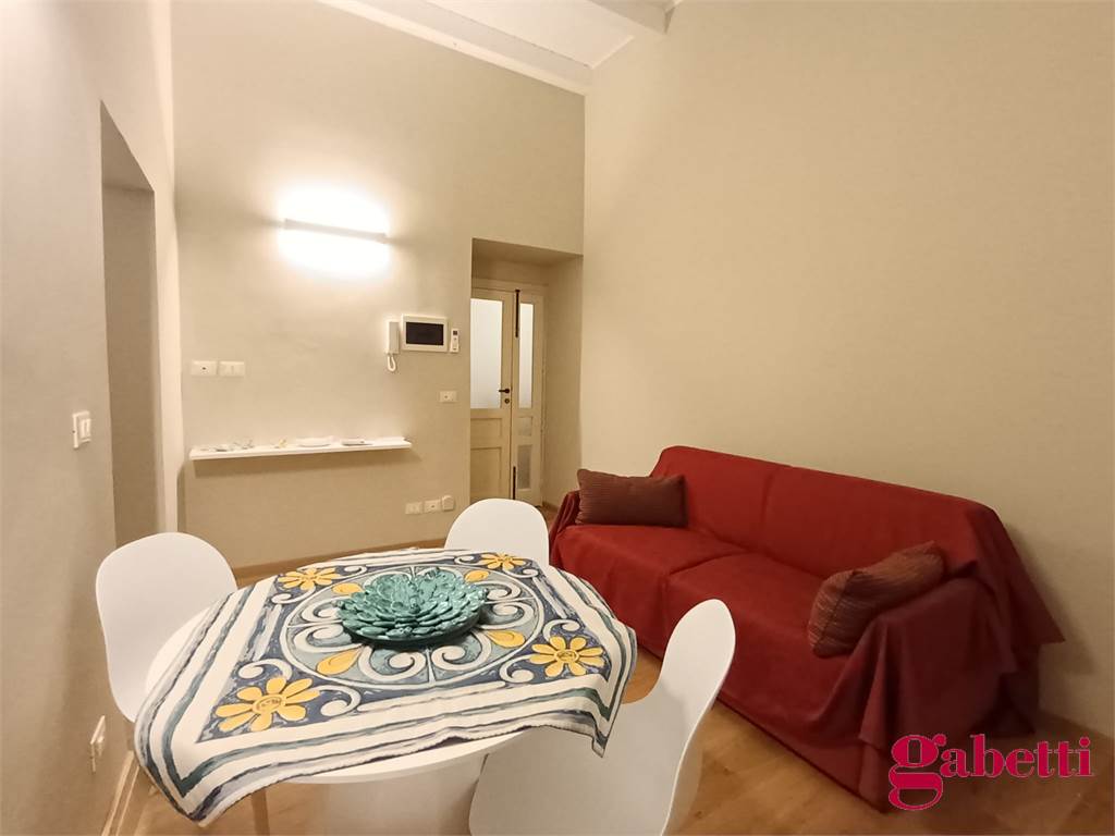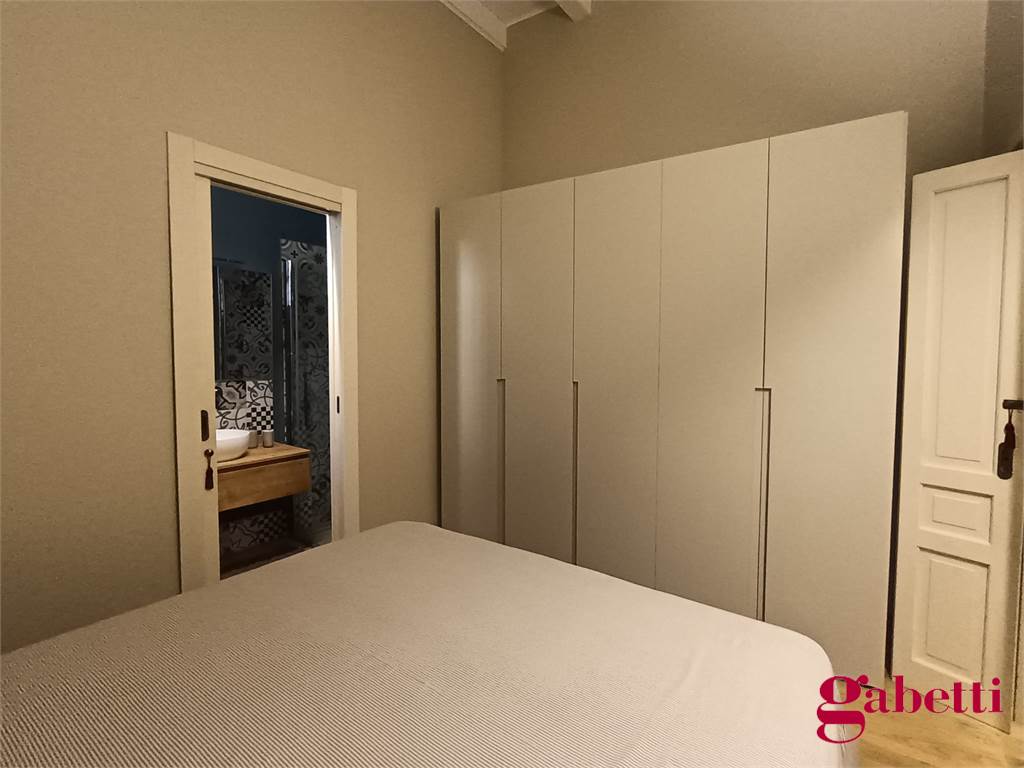 La casa ha ingresso sulla cucina abitabile con piano induzione, frigorifero, forno e lavatrice incassata. Il piccolo corridoio conduce alla camera matrimoniale (con ampio armadio e letto contenitore) e al bagno in camera (dotato di doccia ampia e finestra).