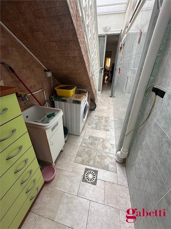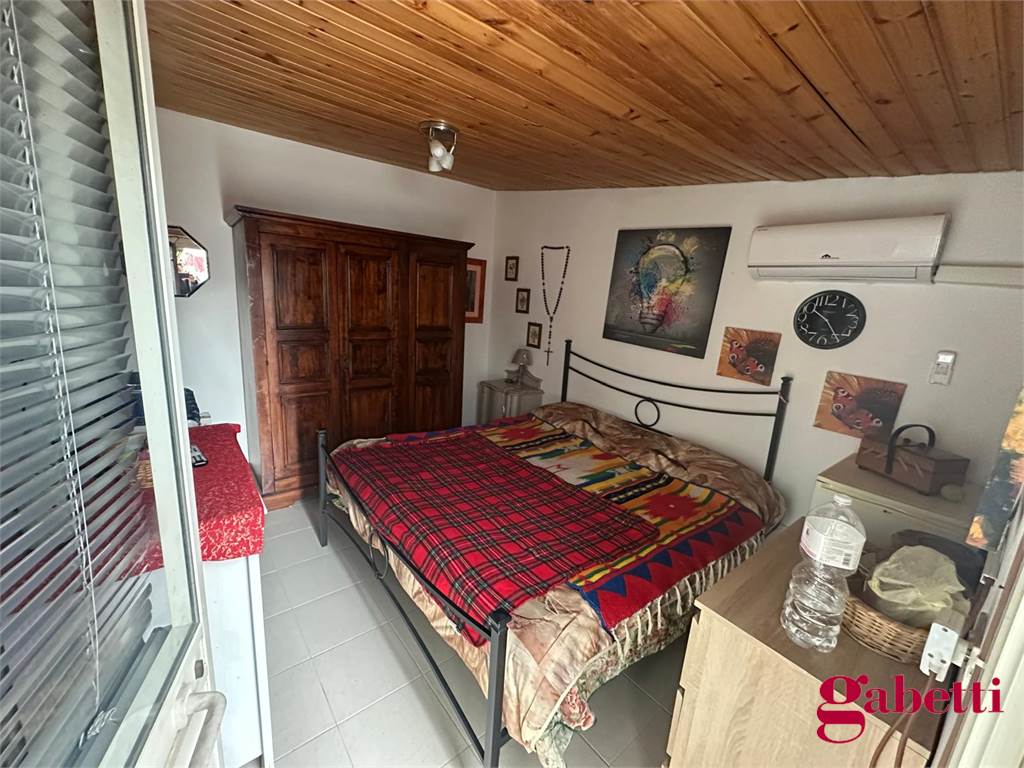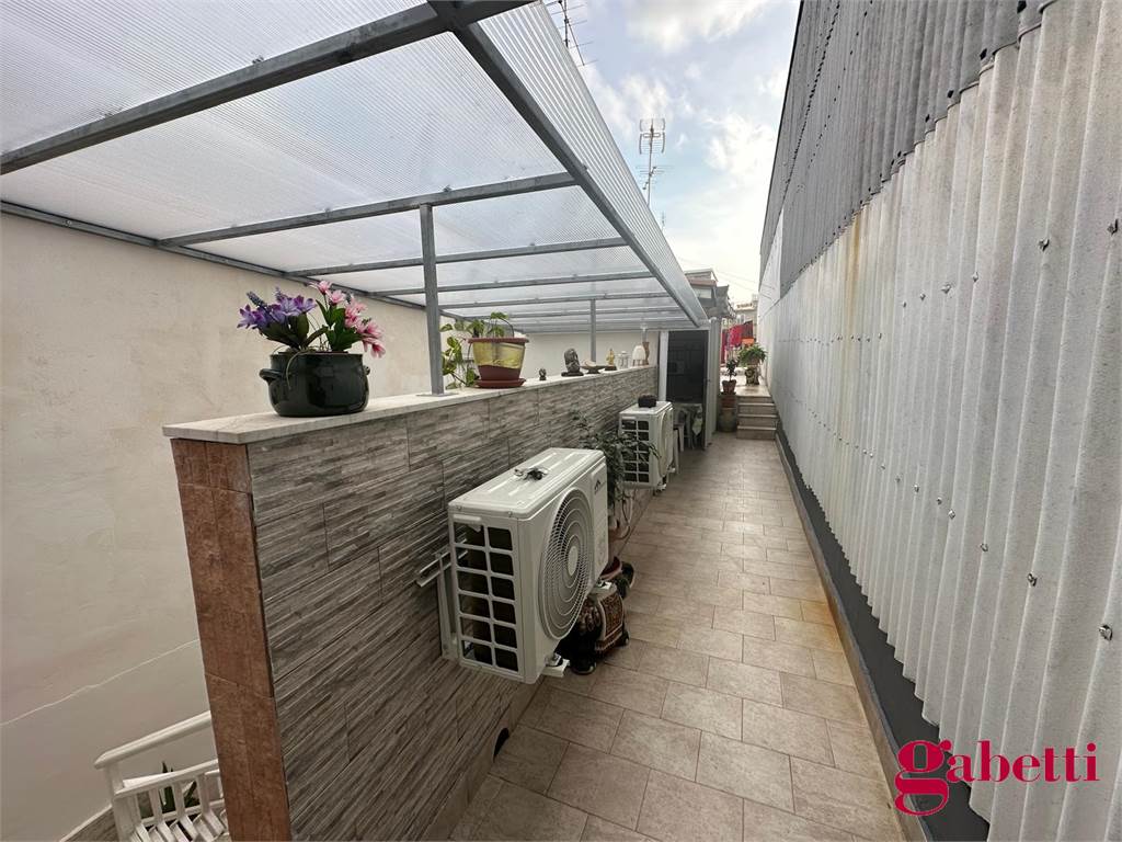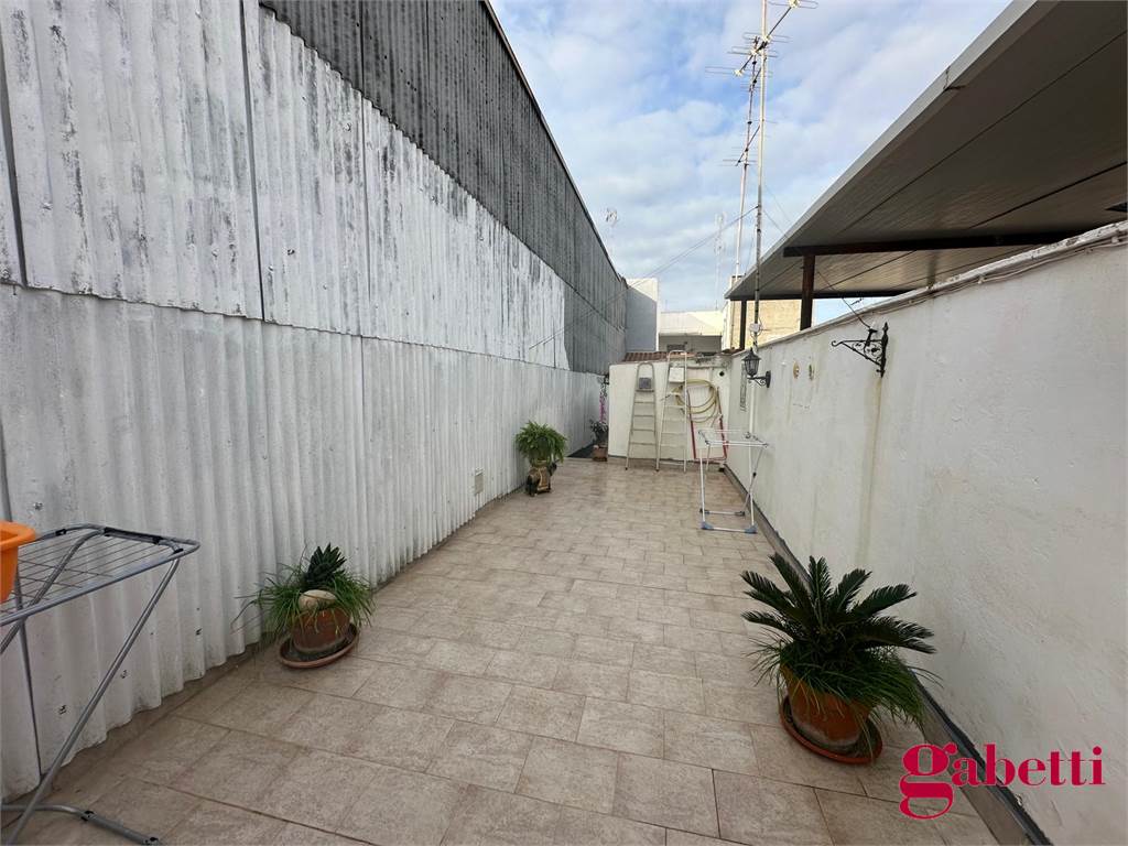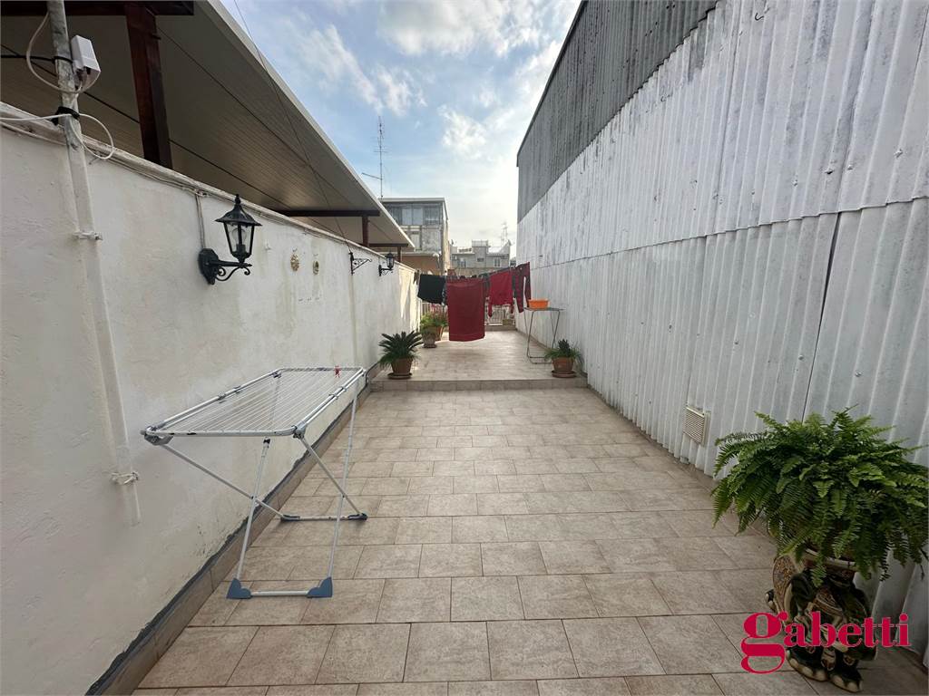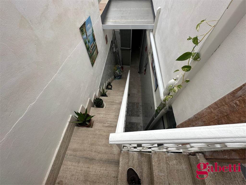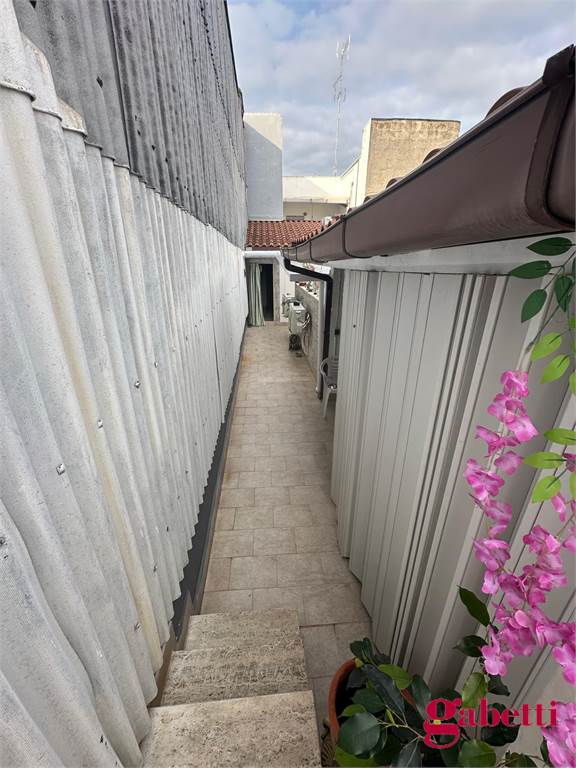 La casa ha comodo ingresso con finestra (dotata di grate in ferro), salottino (collegato direttamente all’ingresso e alla camera successiva), saloncino (di passaggio), cucina abitabile, bagno con finestra e doccia, cortile, doppio servizio esterno con doccia, camera da letto, scale di collegamento al terrazzo, camera da letto matrimoniale con soffitto in legno, cucinino esterno, ampio terrazzo.