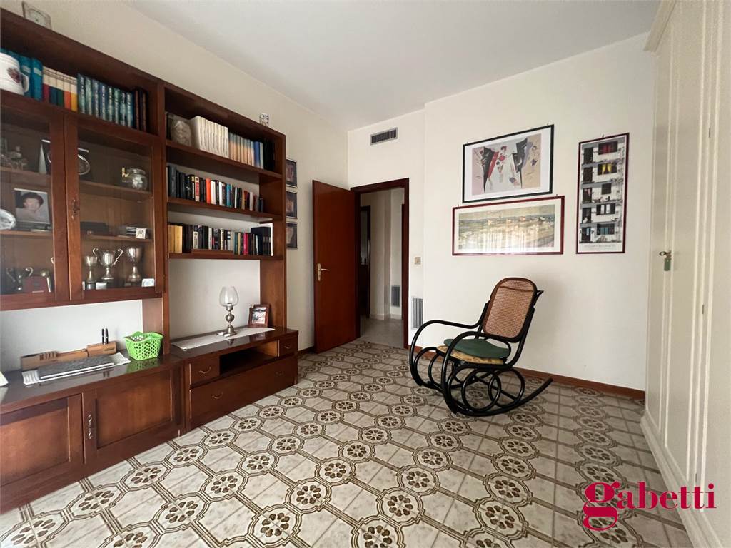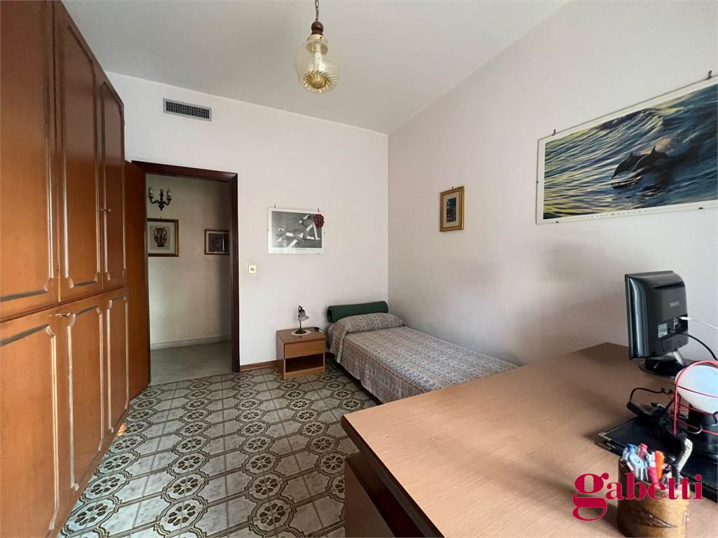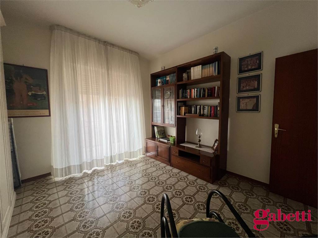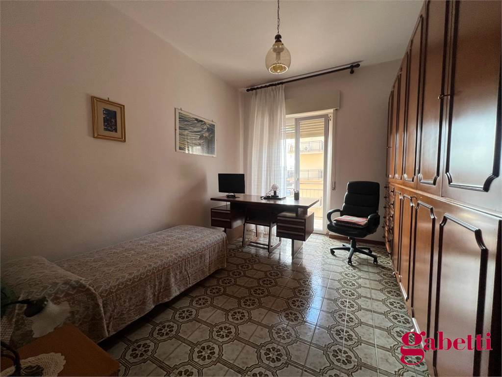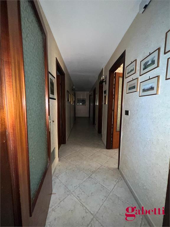 La casa ha un grande disimpegno d’ingresso con ripostiglio, una camera con balcone esclusivo (attualmente adibita a salotto), spazioso corridoio, ampio salone di 46 mq con due accessi e balcone esclusivo, cucina abitabile con balcone verandato, bagno con vasca e finestra, doppio servizio con doccia e spazio lavanderia, camera singola con accesso al terzo balcone, camera da letto con balcone comune alla stanza singola, camera matrimoniale con cabina armadio e balcone esclusivo.