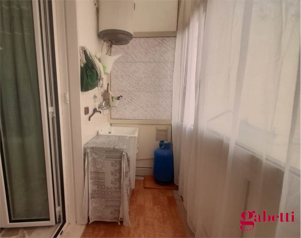 L’appartamento, in buone condizioni, ha un anti ingresso comune ad un ulteriore appartamento, ingresso proprio, comodo corridoio, cucina soggiorno “aperta” con veranda chiusa (dove è collocata la lavanderia e la pilozza), piccolo ripostiglio, camera da letto matrimoniale con balcone esclusivo, camera da letto con finestra, grande bagno con finestra e ampio vano doccia.