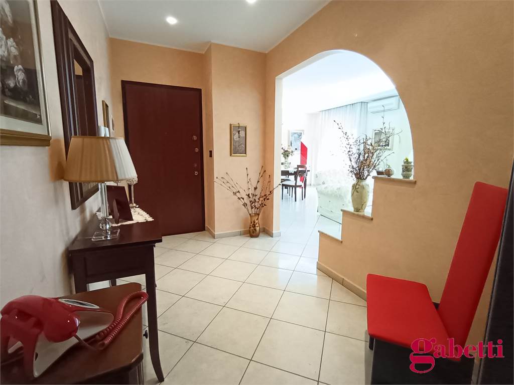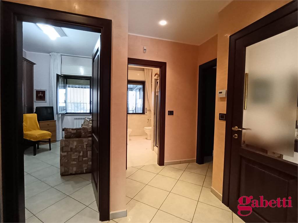 La casa ha comodo ingresso, salone doppio con apertura ad arco e finestra e balcone esclusivo, disimpegno (separato dall’ingresso da una porta a vetri), comoda cucina con annesso cucinino posto nel terrazzo chiuso a vetri (che interessa una parte del terrazzo e dove è presente anche l’area lavanderia), camera da letto matrimoniale con balcone esclusivo, camera singola con grande finestra (che affaccia sul terrazzo), spazioso ripostiglio, bagno con doccia e finestra.