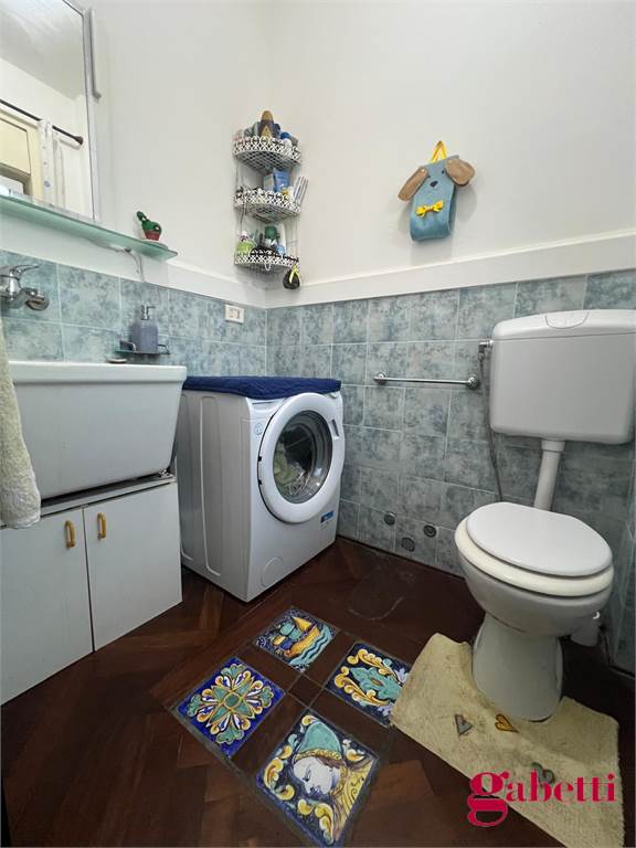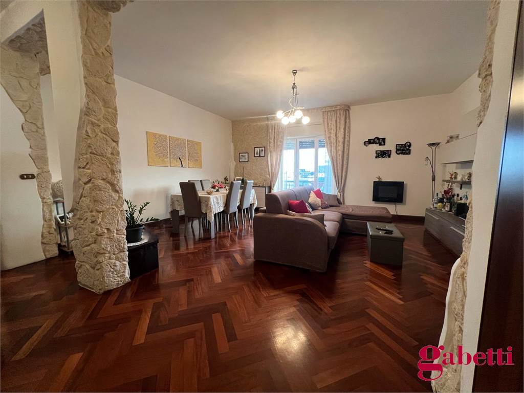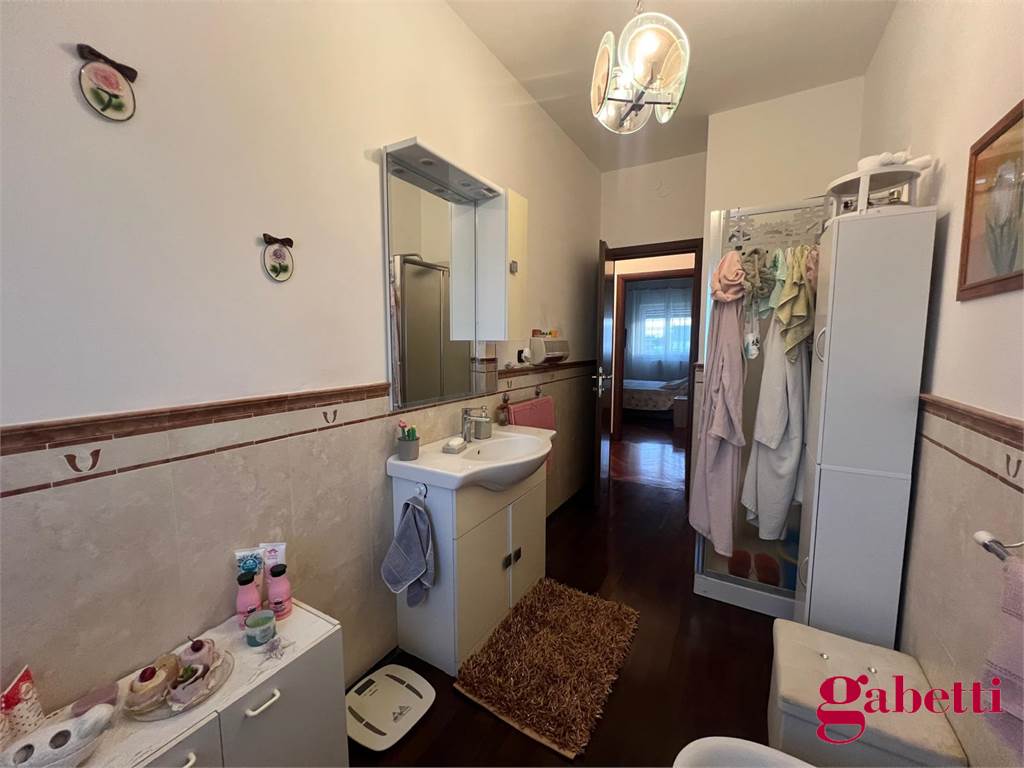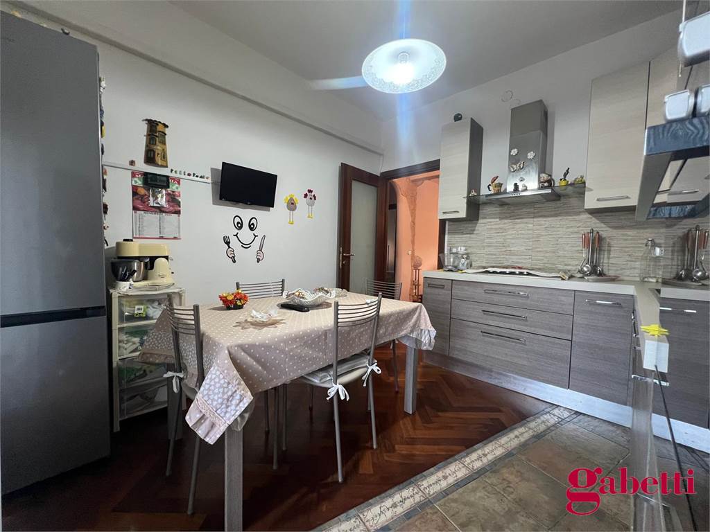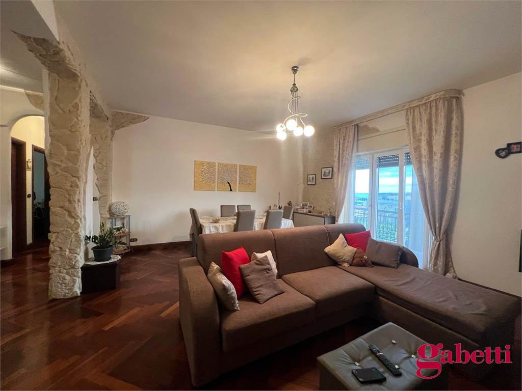 la casa ha ingresso su un grande e signorile salone aperto e con balcone esclusivo, cucina abitabile con balcone esclusivo e doppio servizio (con wc, pilozza e angolo lavatrice), disimpegno, bagno con doccia e finestra, camera da letto matrimoniale con finestra, camera da letto con finestra, comodo ripostiglio.