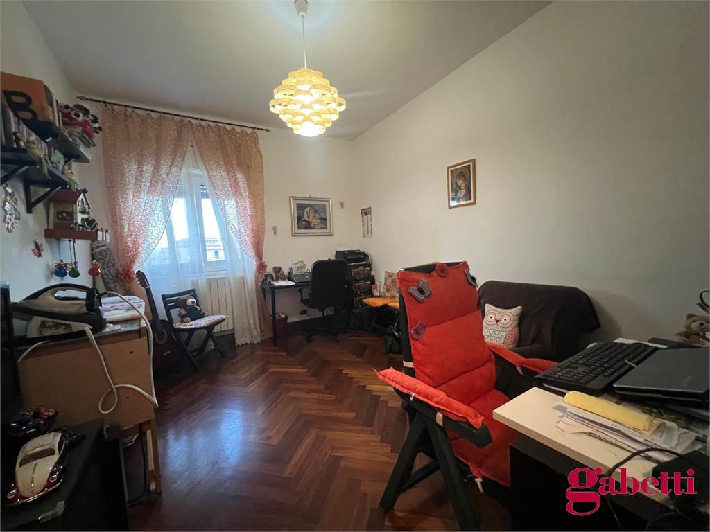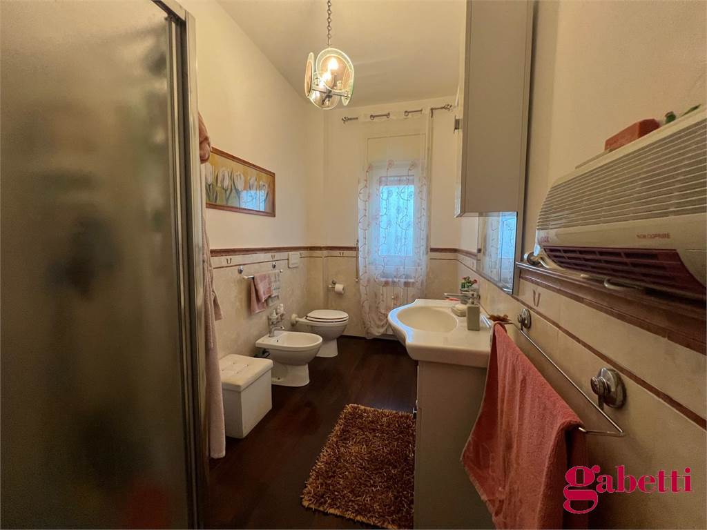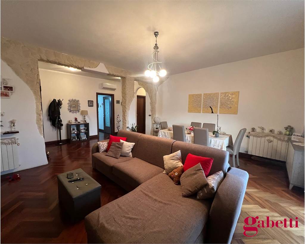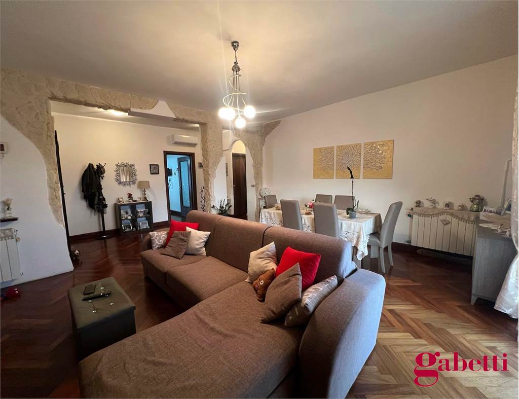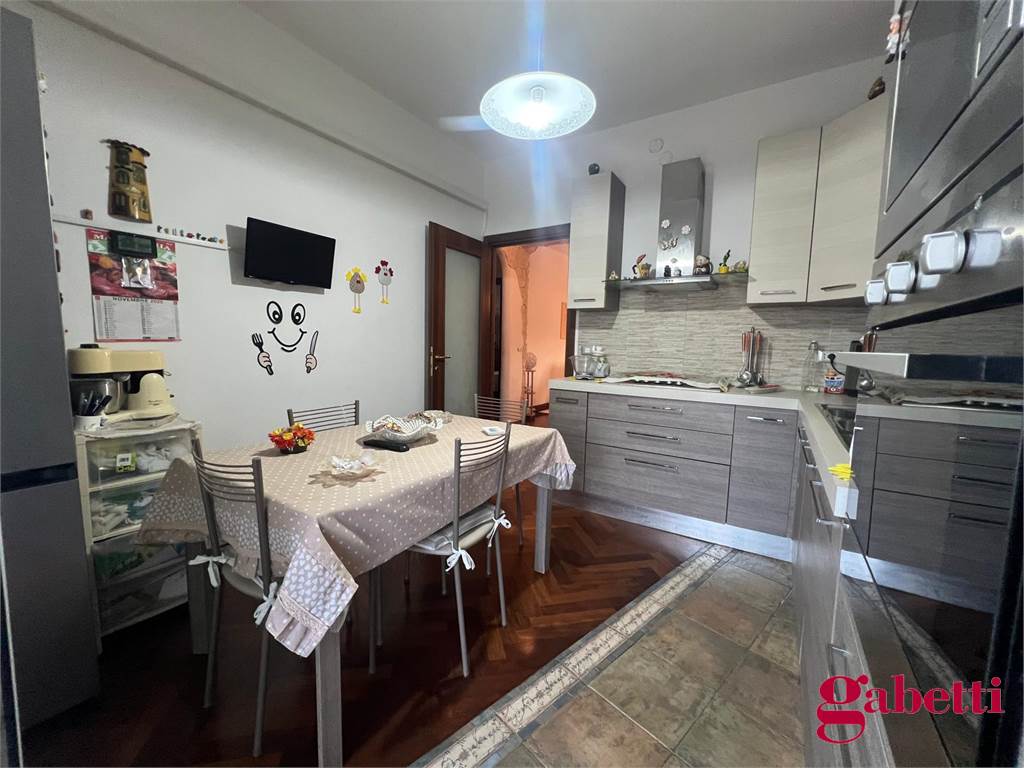 la casa ha ingresso su un grande e signorile salone aperto e con balcone esclusivo, cucina abitabile con balcone esclusivo e doppio servizio (con wc, pilozza e angolo lavatrice), disimpegno, bagno con doccia e finestra, camera da letto matrimoniale con finestra, camera da letto con finestra, comodo ripostiglio.
