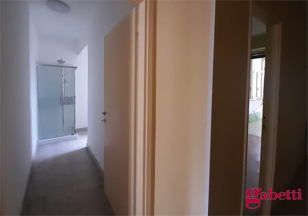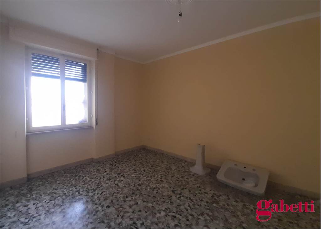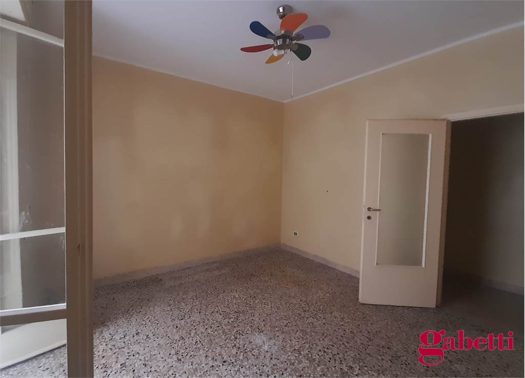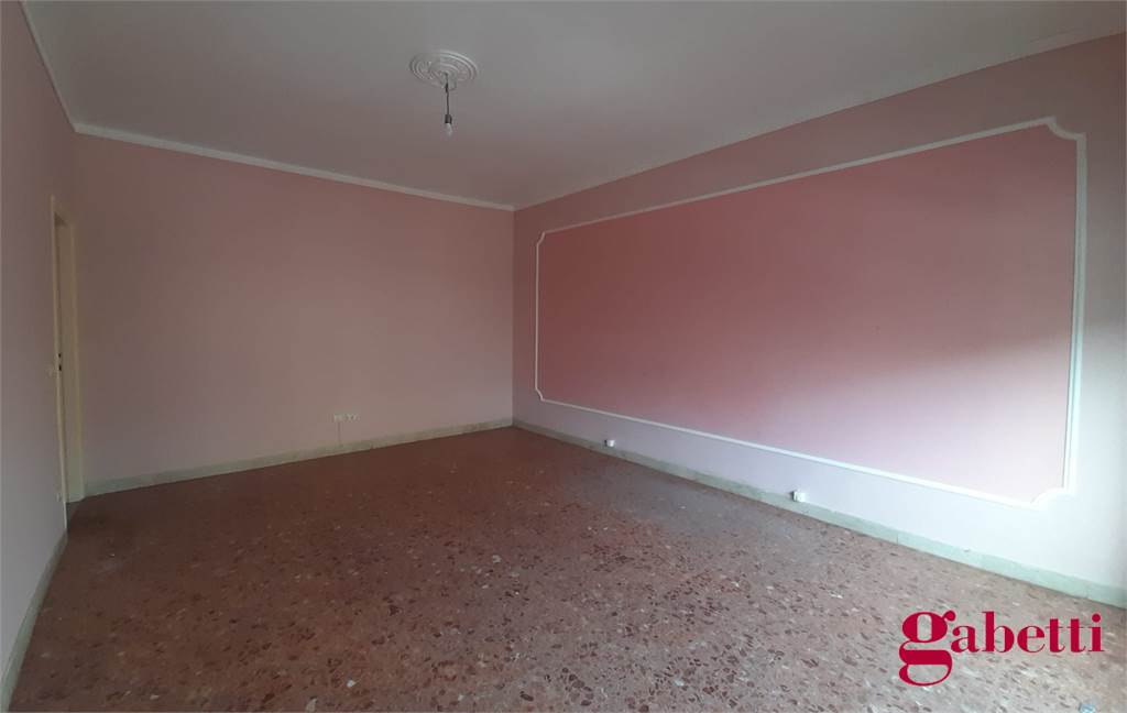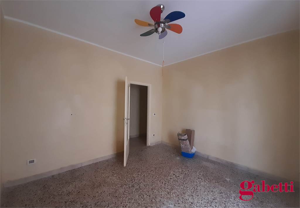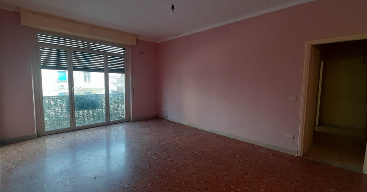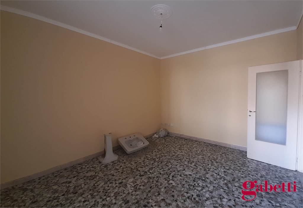La casa, da ristrutturare, ha ingresso sul corridoio, salone con ampia porta finestra verso il balcone a petto, camera singola (che può essere adibita a studio o salotto) con grande finestra, camera da letto con finestra, cucina con accesso al grande balcone verandato (dove è ricavata anche la pilozza e lo spazio lavatrice), doppio servizio con finestra e doccia, bagno principale con finestra e vasca, seconda camera singola con accesso al balcone verandato, camera matrimoniale con accesso al balcone verandato