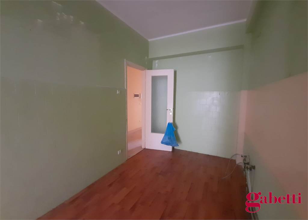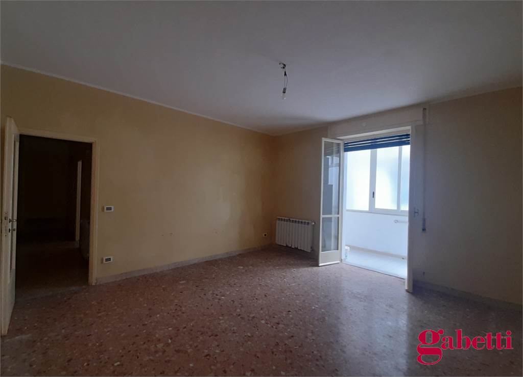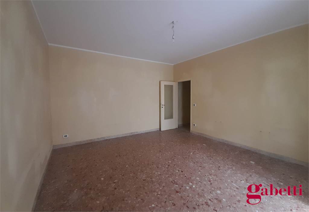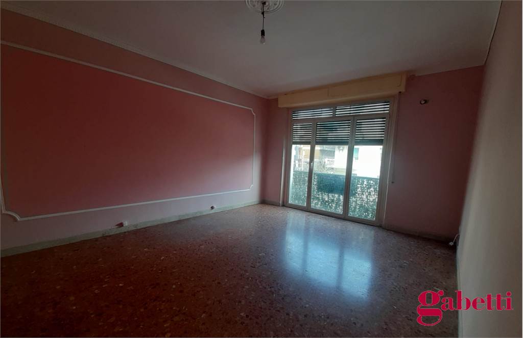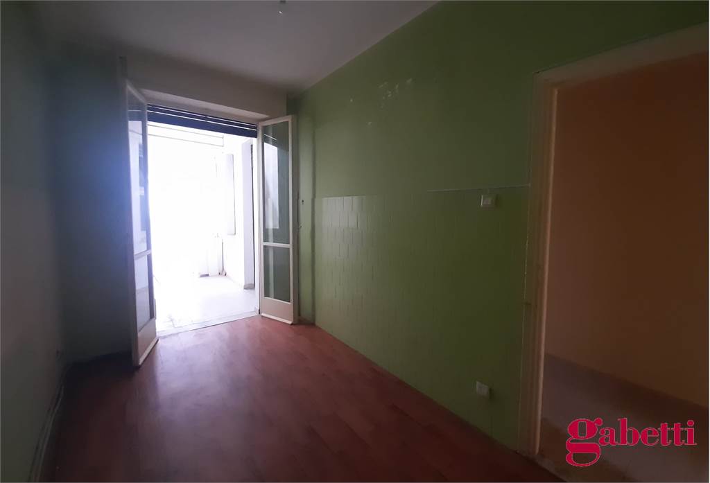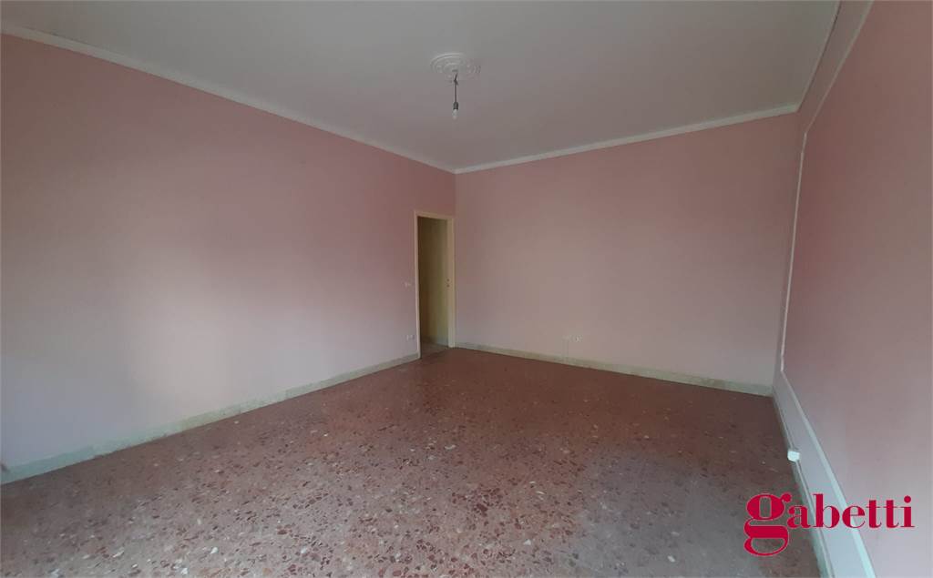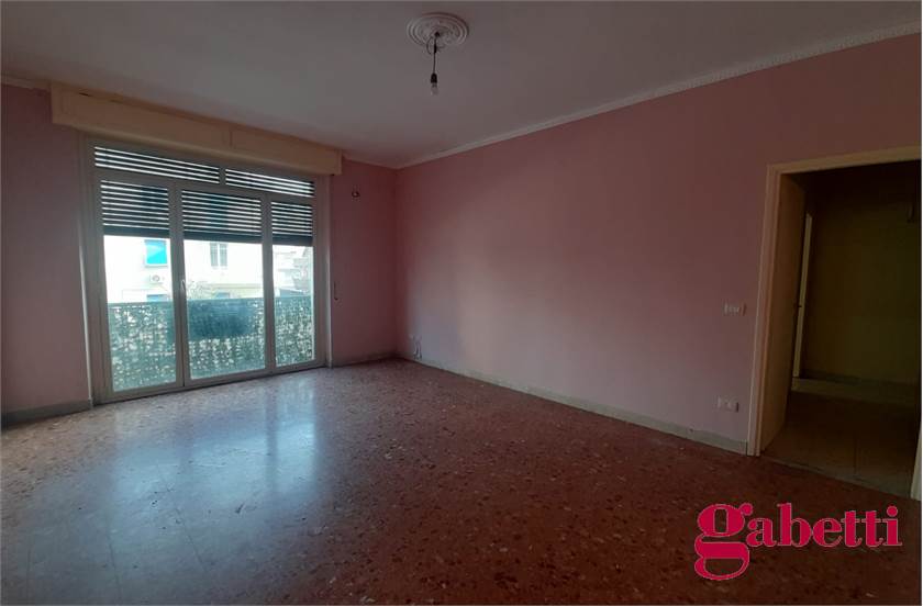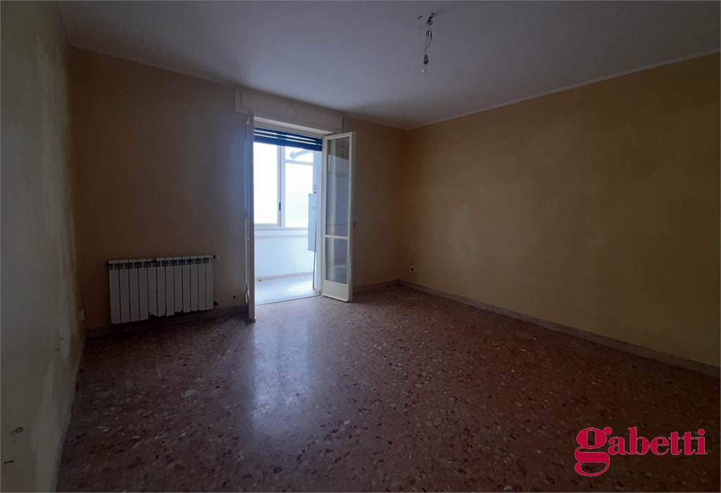 La casa, da ristrutturare, ha ingresso sul corridoio, salone con ampia porta finestra verso il balcone a petto, camera singola (che può essere adibita a studio o salotto) con grande finestra, camera da letto con finestra, cucina con accesso al grande balcone verandato (dove è ricavata anche la pilozza e lo spazio lavatrice), doppio servizio con finestra e doccia, bagno principale con finestra e vasca, seconda camera singola con accesso al balcone verandato, camera matrimoniale con accesso al balcone verandato
