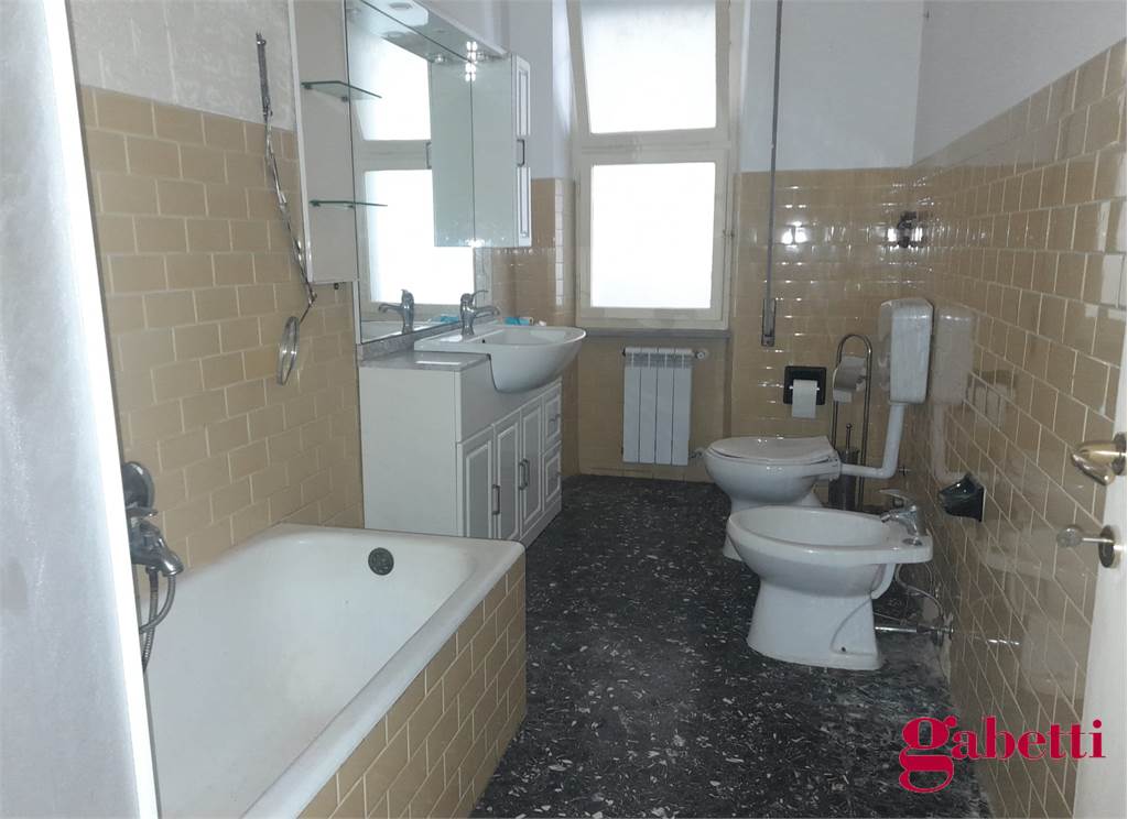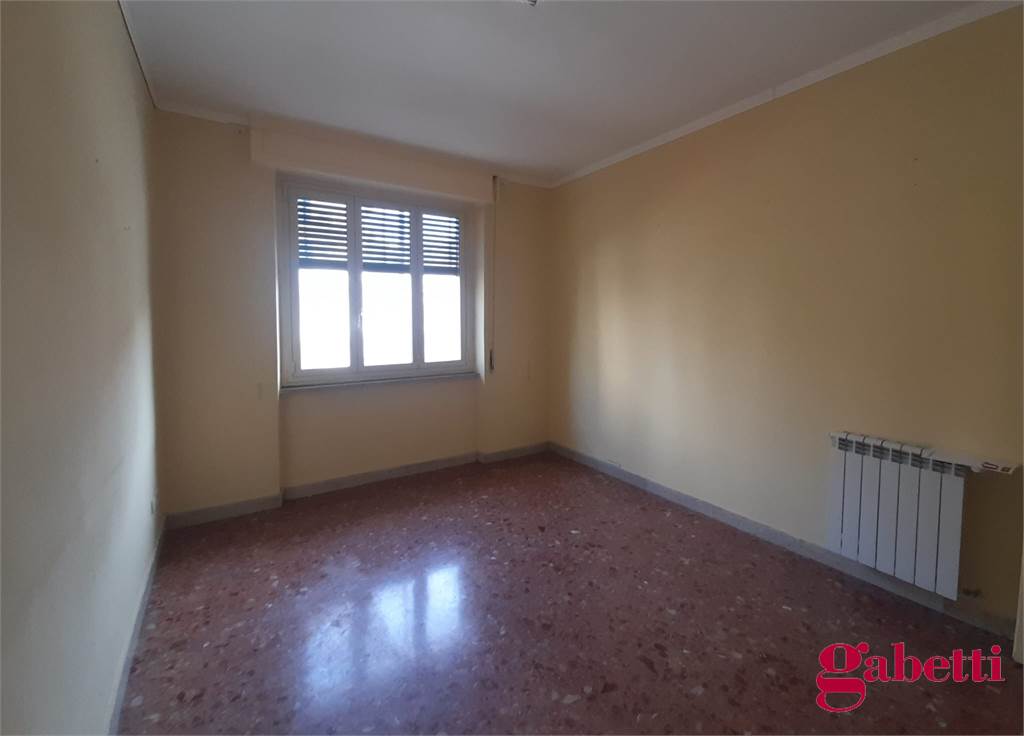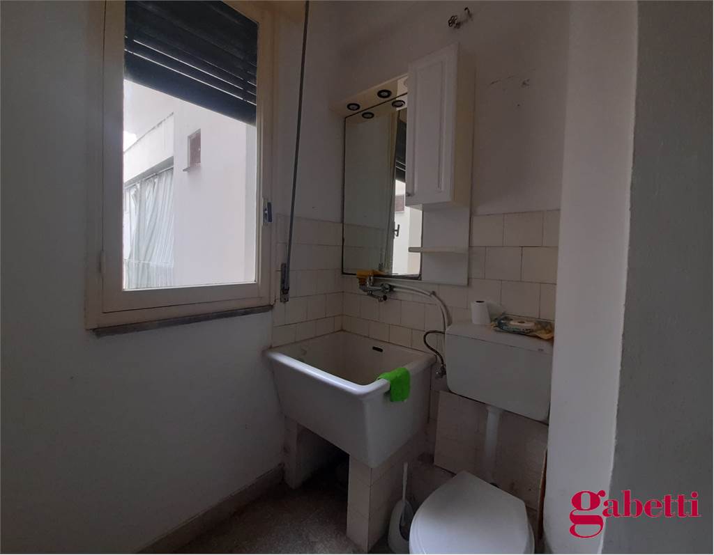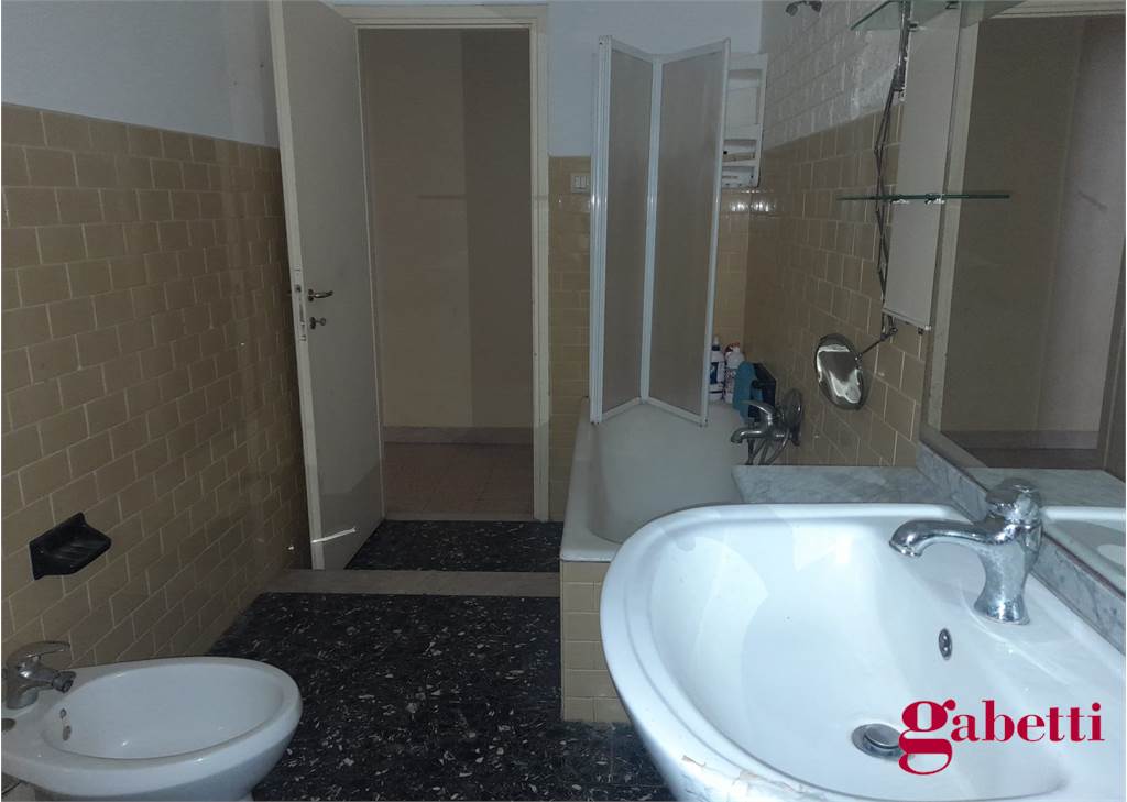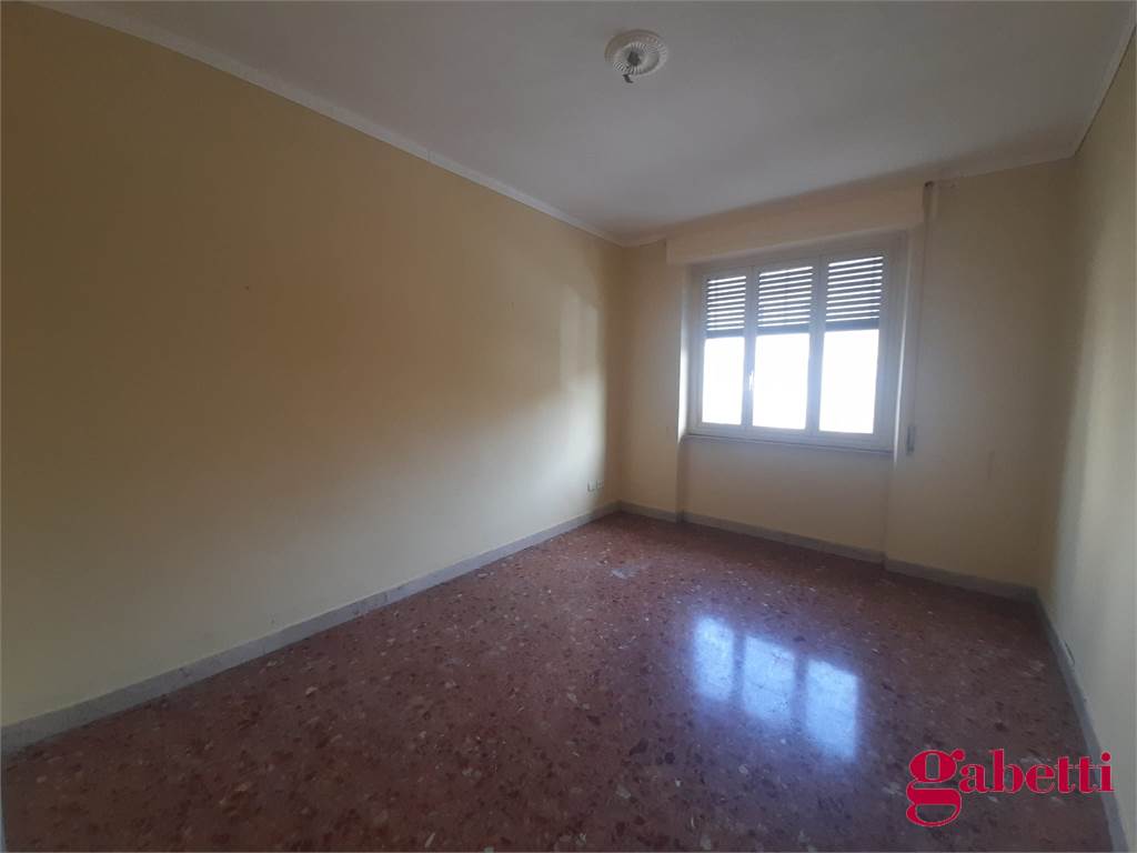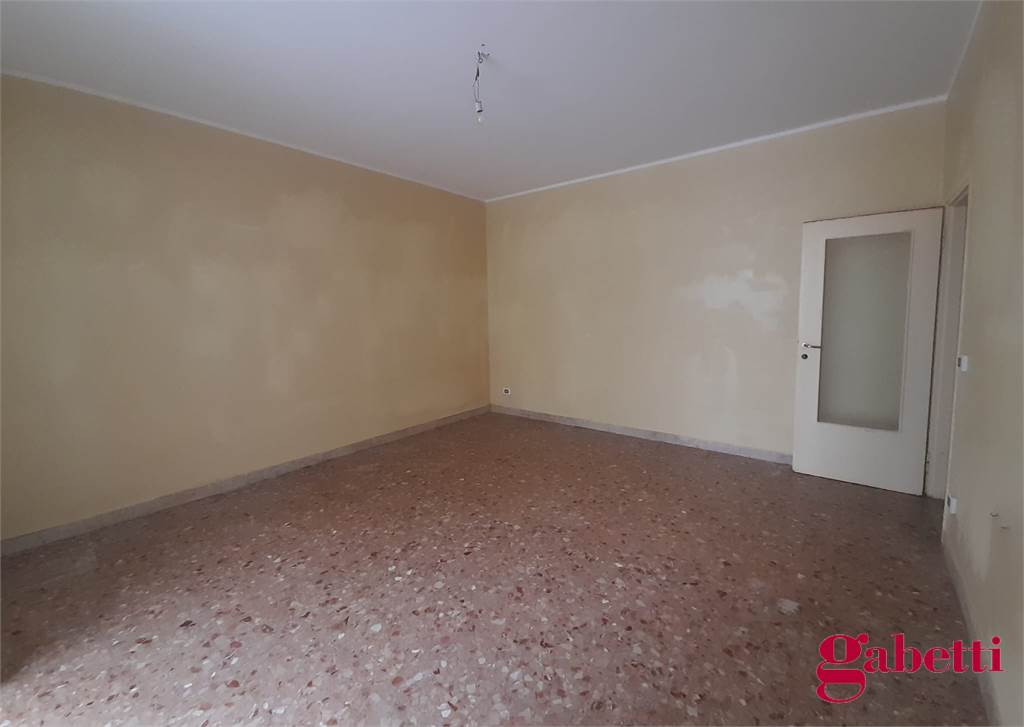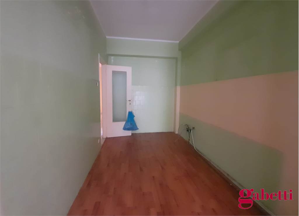 La casa, da ristrutturare, ha ingresso sul corridoio, salone con ampia porta finestra verso il balcone a petto, camera singola (che può essere adibita a studio o salotto) con grande finestra, camera da letto con finestra, cucina con accesso al grande balcone verandato (dove è ricavata anche la pilozza e lo spazio lavatrice), doppio servizio con finestra e doccia, bagno principale con finestra e vasca, seconda camera singola con accesso al balcone verandato, camera matrimoniale con accesso al balcone verandato