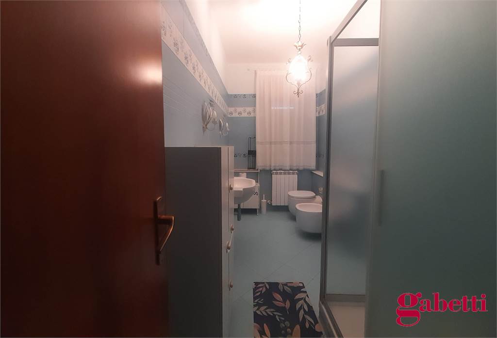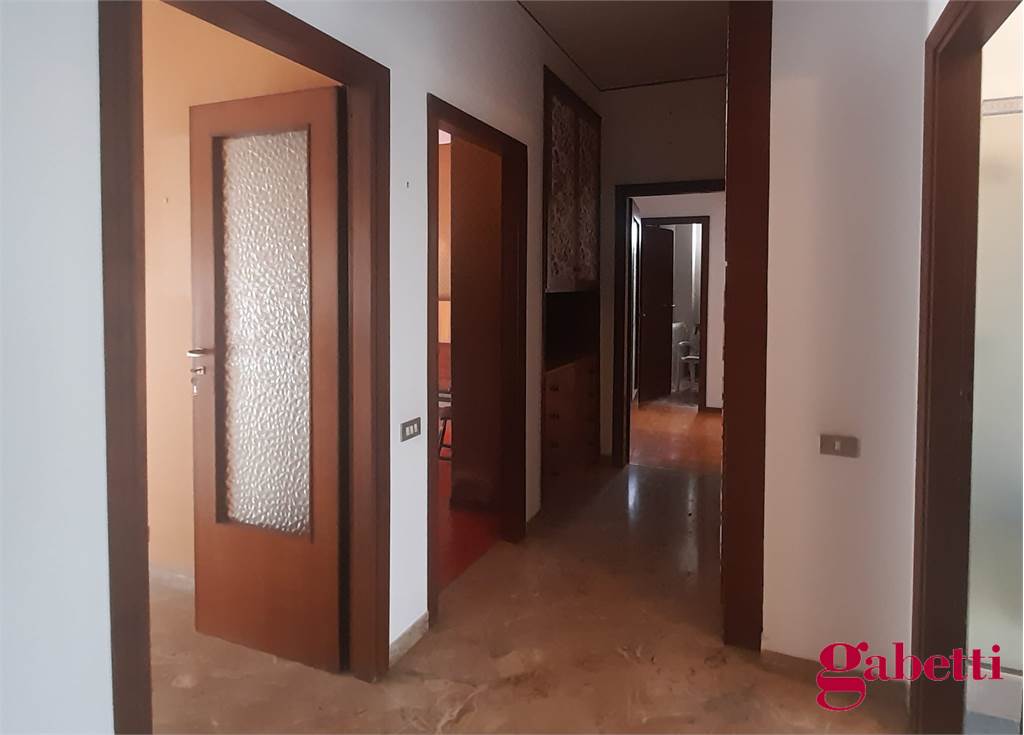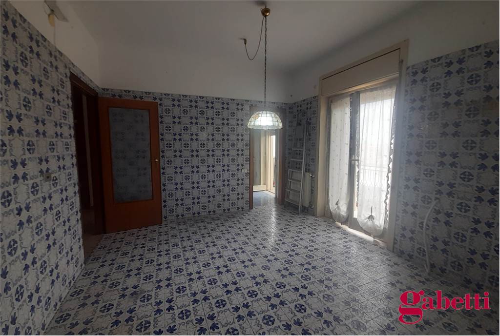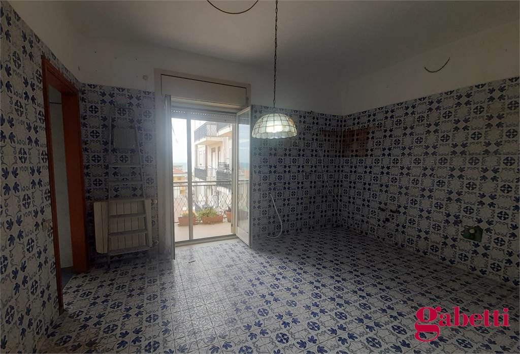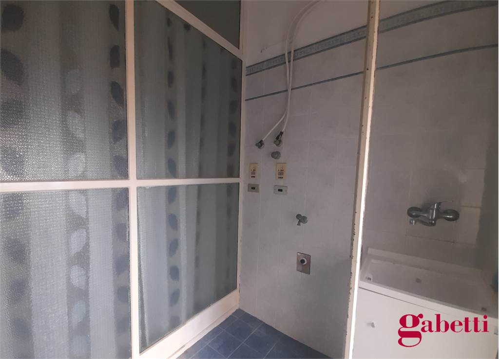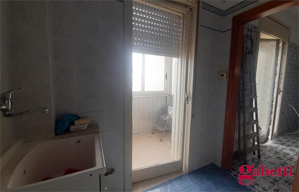 La casa , in discrete condizioni, ha ingresso (con porta divisoria), salone doppio con grande finestra e porta finestra verso il balcone principale, comoda cucina abitabile con balcone (in parte libero e in parte verandato per creare il ripostiglio esterno) e accesso alla lavanderia confinante, corridoio, bagno con doccia e parete vetrata, bagno principale con doccia e finestra, camera singola (destinabile a vano letto o studio) con accesso al balcone principale, camera da letto con finestra, ripostiglio interno con piccola finestra, camera da letto matrimoniale con accesso al balcone principale, posto auto libero scoperto e recintato.