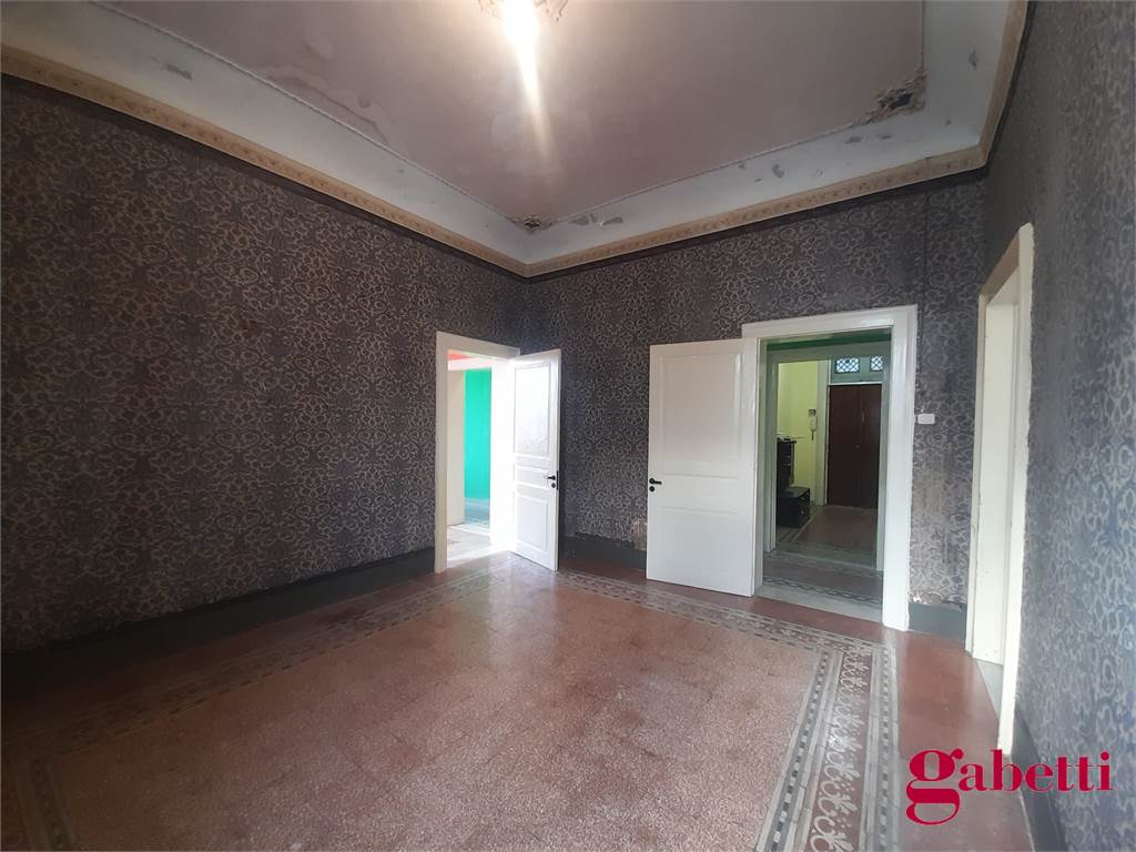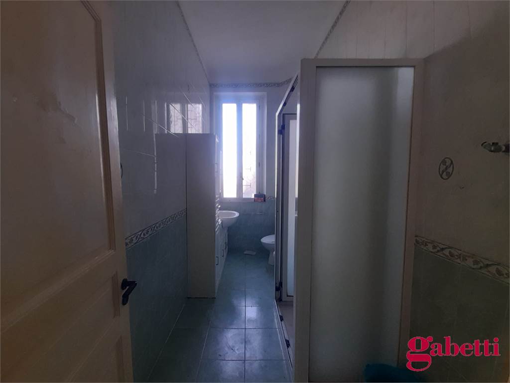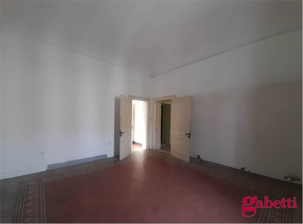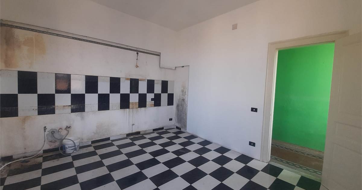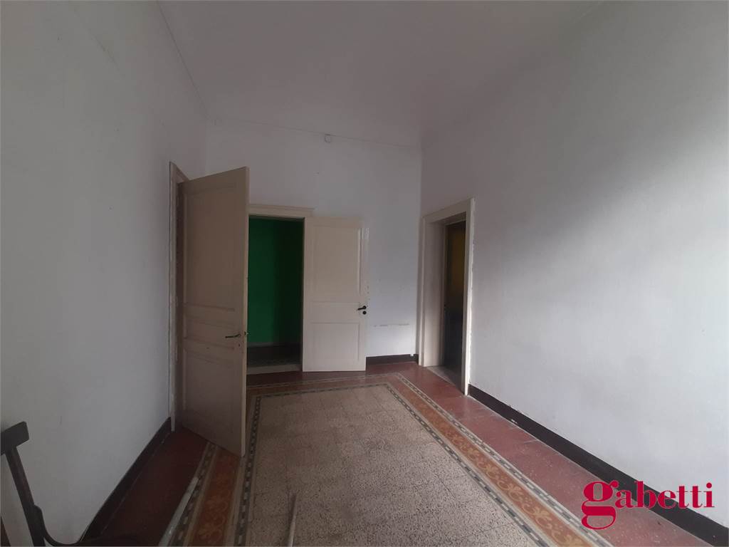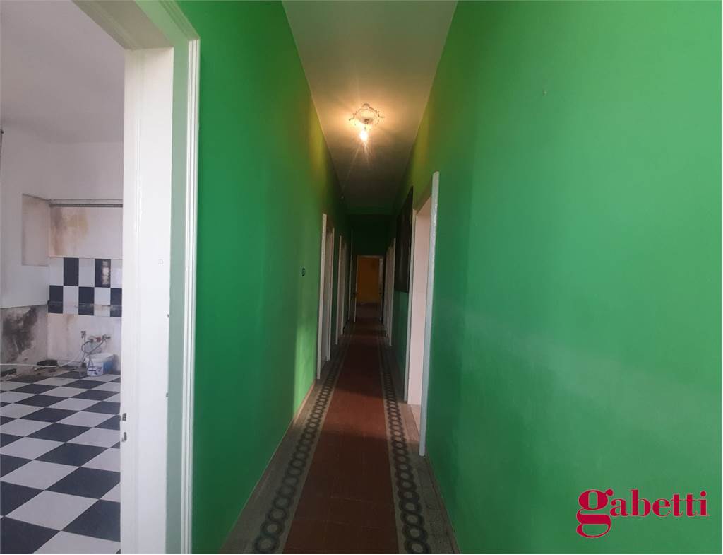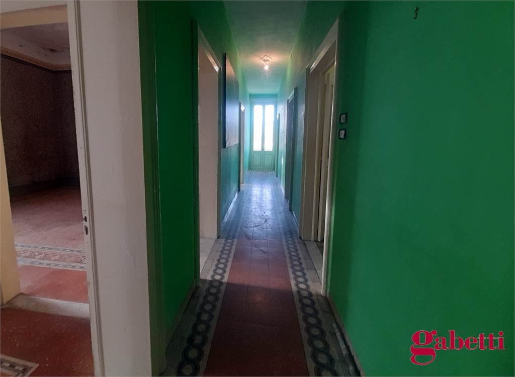 La casa, in discrete condizioni e da ristrutturare, ha ingresso sul disimpegno (primo corridoio), lungo corridoio, cucina abitabile con due finestre e accesso al ballatoio, bagno con doccia e finestra, balcone alla fine del corridoio, camera matrimoniale angolare con finestra e balcone esclusivo, camera da letto con finestra, camera singola con balcone esclusivo, camera da letto angolare con finestra e balcone esclusivo, ulteriore camera singola con finestra, comodo ripostiglio (che può fungere da dispenza).