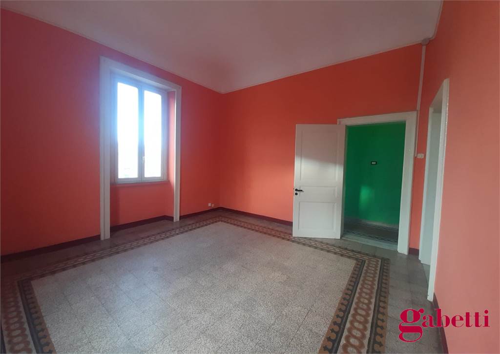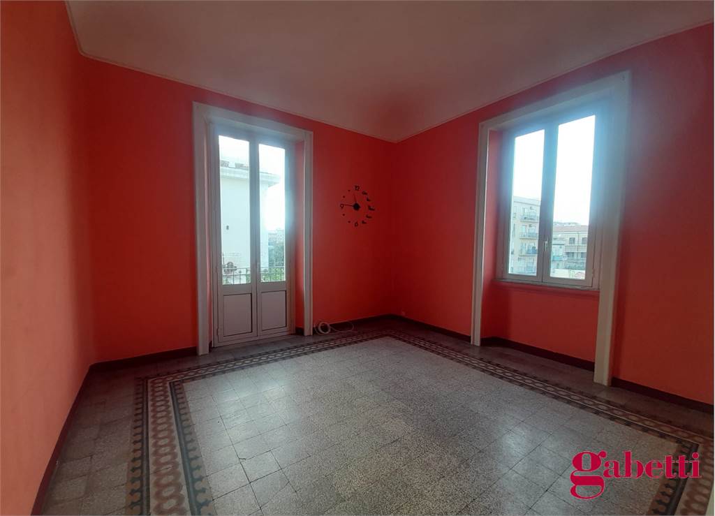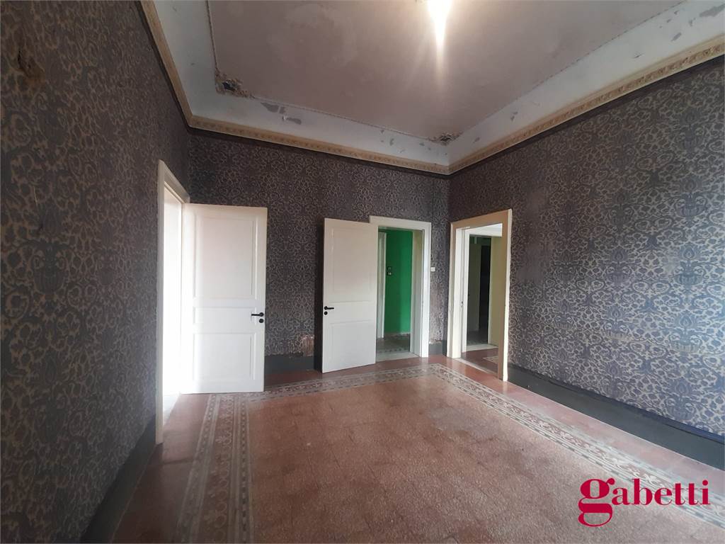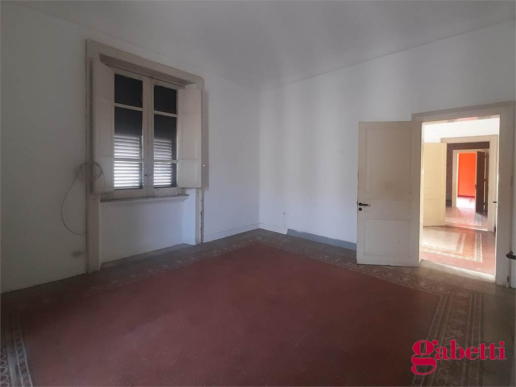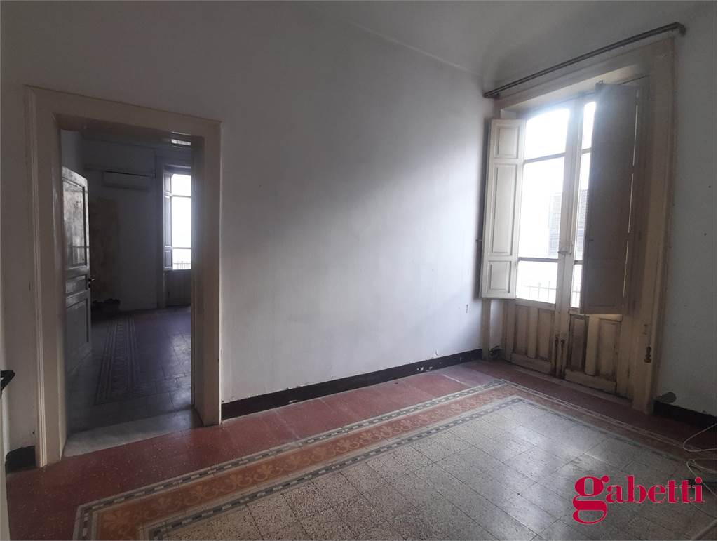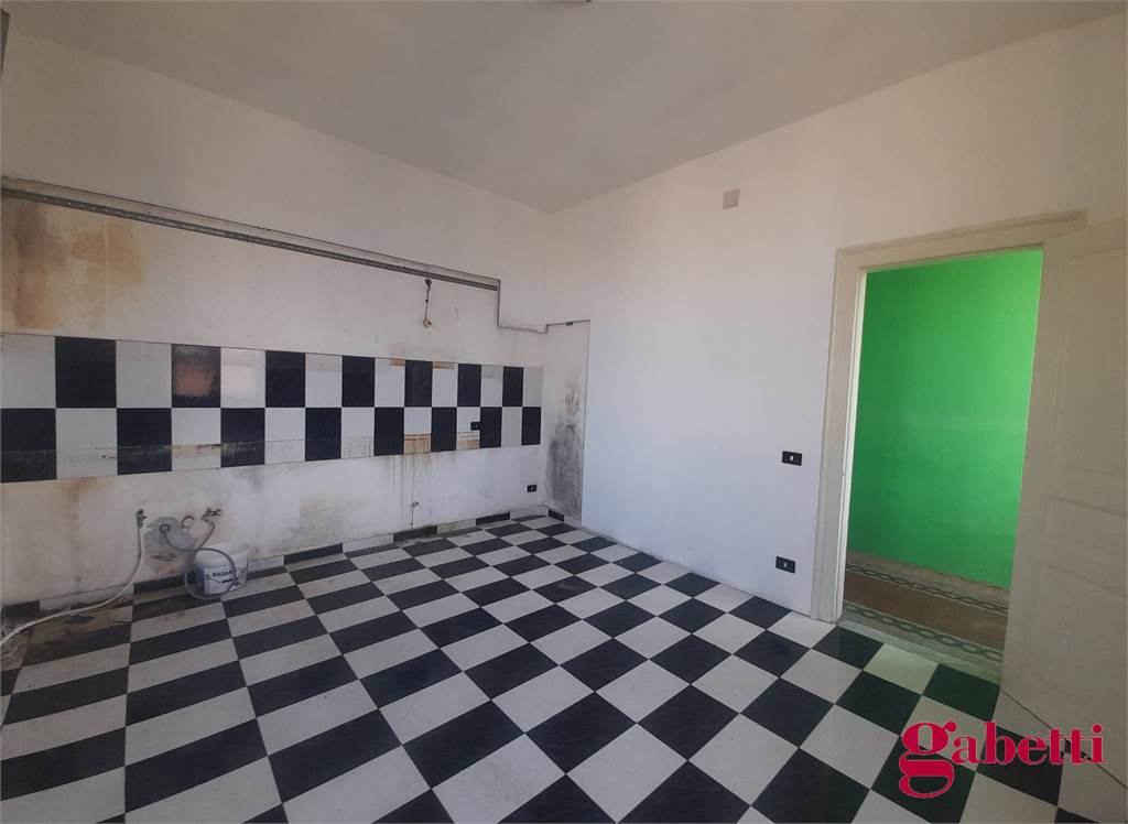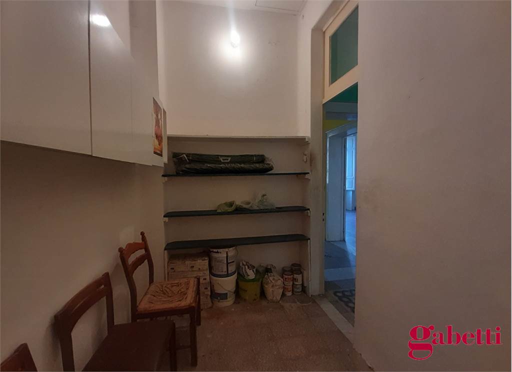 La casa, in discrete condizioni e da ristrutturare, ha ingresso sul disimpegno (primo corridoio), lungo corridoio, cucina abitabile con due finestre e accesso al ballatoio, bagno con doccia e finestra, balcone alla fine del corridoio, camera matrimoniale angolare con finestra e balcone esclusivo, camera da letto con finestra, camera singola con balcone esclusivo, camera da letto angolare con finestra e balcone esclusivo, ulteriore camera singola con finestra, comodo ripostiglio (che può fungere da dispenza).