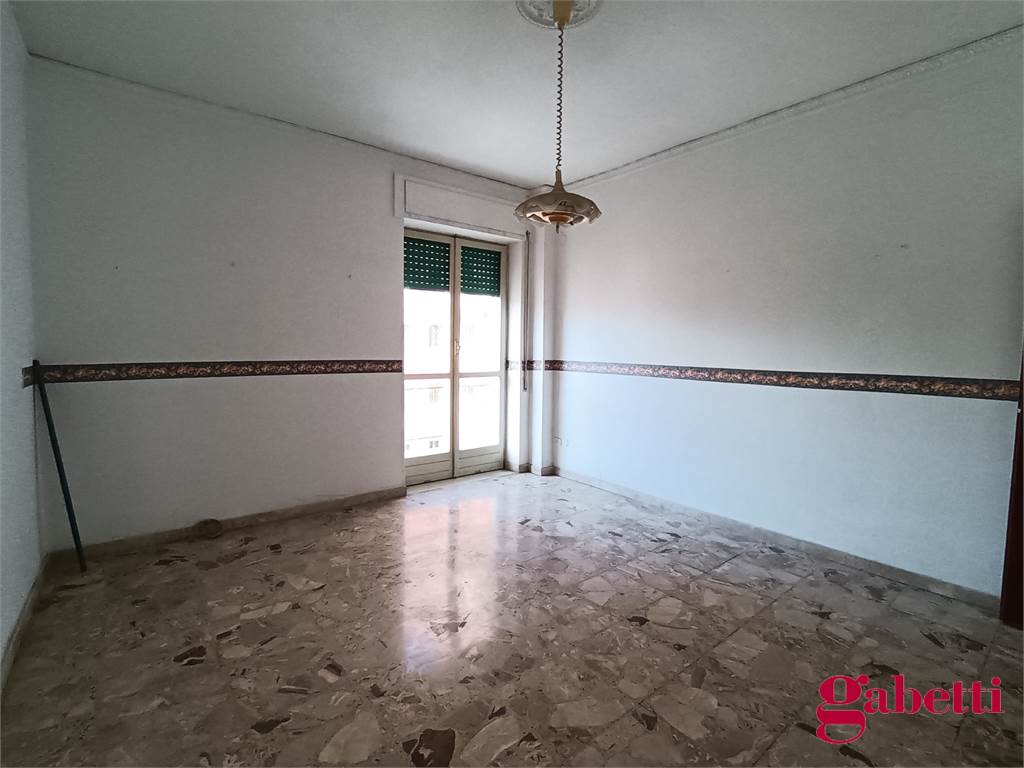 L’appartamento, in discrete condizioni e non abitato, è composto da ingresso con finestrella, lungo corridoio, salotto con accesso al balcone principale, camera singola con accesso al balcone principale, cucina abitabile con accesso al balcone comune, disimpegno, bagno principale con vasca e finestra, doppio servizio con finestra e pilozza (ed eventualmente spazio lavanderia), camera da letto con grande finestre, camera da letto matrimoniale con balcone esclusivo. La casa ha anche un posto auto doppio e libero in area condominiale, ma non recintata.
