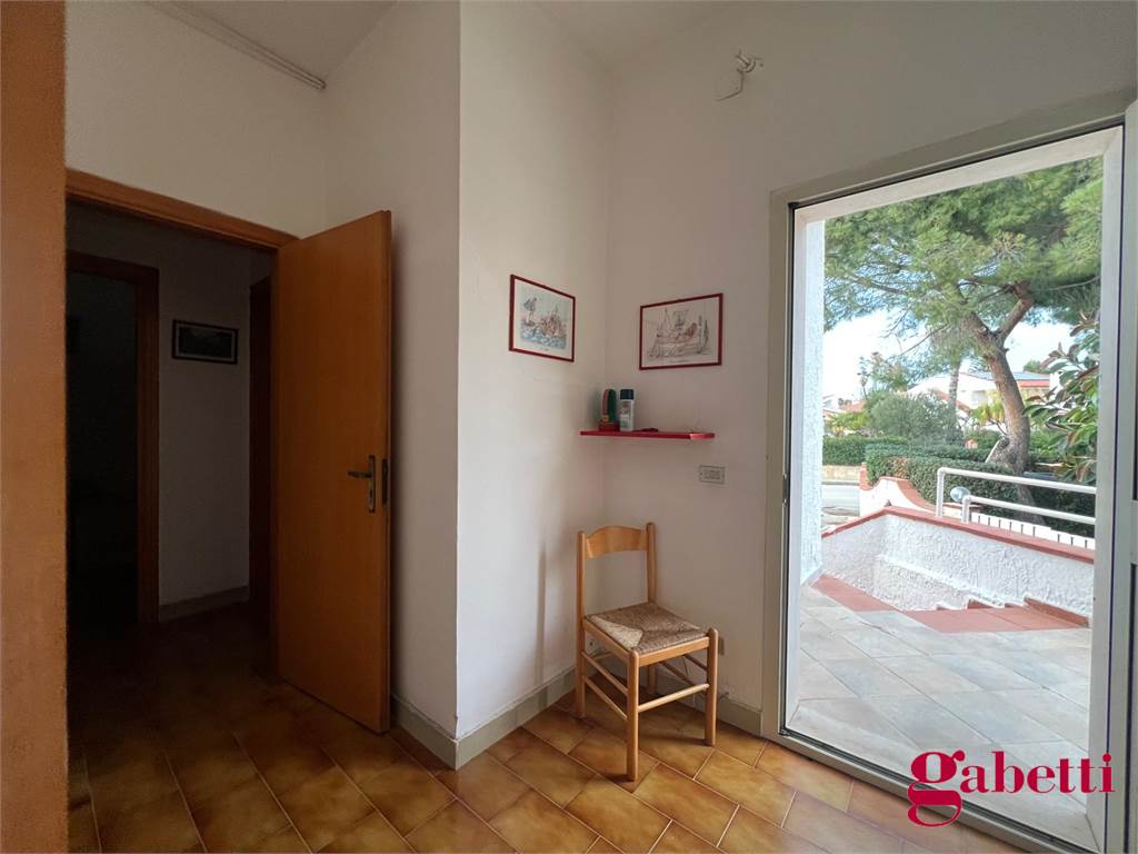 La villa ha, al piano terra, una grande zona living aperta, con la zona soggiorno e l’area cucina, il bagno principale con doccia e un’ampia area destinabile a ripostiglio. Al primo piano, la villa ha disimpegno e corridoio, camera da letto matrimoniale con finestra, camera singola con accesso al balcone, seconda camera da letto con accesso al balcone. Il primo piano, raggiungibile con scala esterna, offre due balconi (uno che costituisce il pianerottolo d’ingresso al piano e un altro che appare terrazzato) con piacevole vista.